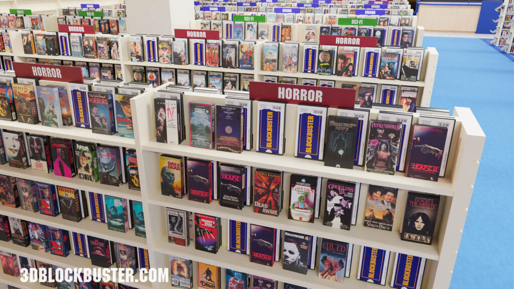 Horror is the first section that has its own genre’s titles randomized. (As the checked out films pull from a different collection, we can just call them misshelved)